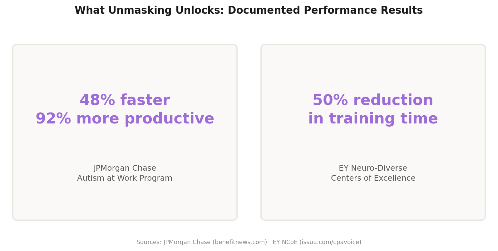 Here's what makes masking tricky for organizations: it is designed to be invisible. A 2023 study published in PLOS ONE found that masking had become "automatic" and "second nature" for many neurodivergent adults — meaning even trained managers often can't detect it. And in many cases, the person doing the masking may not fully recognize it themselves until they get a late diagnosis and suddenly the last 20 years of exhaustion makes sense.